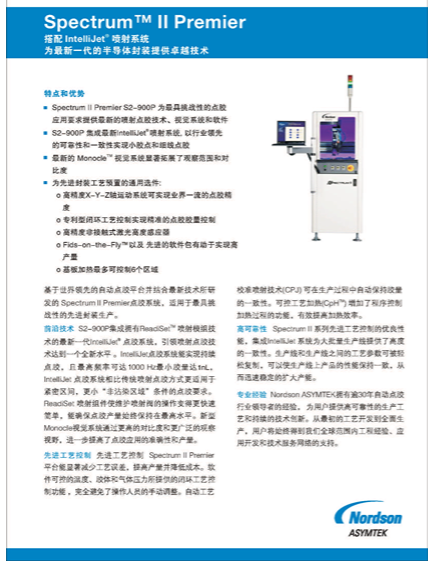 · Spectrum II Premier S2-900P 为最具挑战性的点胶应用要求提供最新的喷射点胶技术、视觉系统和软件